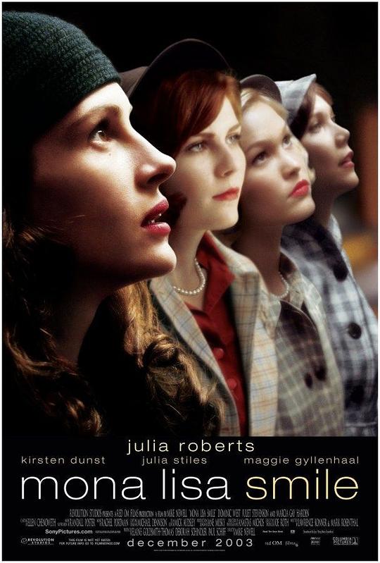 ◎标 题 蒙娜丽莎的微笑 ◎译 名 蒙罗丽莎的微笑 ◎片 名 Mona Lisa Smile ◎年 代 2003 ◎产 地 美国 ◎类 别 剧情 / 爱情 ◎语 言 英语 / 意大利语 ◎上映日期 2004-02-12(中国大陆) / 2003-12-19(美国) ◎IMDb评分 6.5/10 (85674人评价) ◎IMDb链接 https://www.imdb.com/title/tt0304415/ ◎豆瓣评分 7.9/10 (54123人评价) ◎豆瓣链接 https://movie.douban.com/subject/1303010/ ◎片 长 117分钟 ◎导 演 迈克·内威尔 Mike Newell ◎编 剧 马克·罗森塔尔 Mark Rosenthal ◎演 员 朱莉娅·罗伯茨 Julia Roberts 克斯汀·邓斯特 Kirsten Dunst 朱丽娅·斯蒂尔斯 Julia Stiles 玛吉·吉伦哈尔 Maggie Gyllenhaal 金妮弗·古德温 Ginnifer Goodwin 多米尼克·韦斯特 Dominic West 马西娅·盖伊·哈登 Marcia Gay Harden 托弗·戈瑞斯 Topher Grace Corey W. Allen Corey W. Allen 丹尼尔·波尼克利 Daniel Ponickly Fred DeReau Fred DeReau 所罗门·辛尔 Solomon Singer Jessica Leigh Johnson Jessica Leigh Johnson Lauren Ferrara Lauren Ferrara Aprill Fasino Aprill Fasino KellyDawn Malloy KellyDawn Malloy 克里斯汀·康奈利 Kristen Connolly 莉莉·拉贝 Lily Rabe Kristen Marie Holly Kristen Marie Holly 埃里克·布鲁诺·伯格曼 Eric Bruno Borgman Jeannette Gould Jennie Eisenhower Jennie Eisenhower 童自荣 Zirong Tong 玛丽·帕斯科 Mary Pascoe Kirstie Bingham Kirstie Bingham Taylor Roberts Taylor Roberts Megan Ferrara Megan Ferrara Matthew Shaffer Matthew Shaffer 阿莱卡萨·帕拉迪诺 Aleksa Palladino 茱丽叶特·斯蒂文森 Juliet Stevenson 克里斯滕·里特 Krysten Ritter 迈克尔·库奥莫 Michael Cuomo 托莉·阿莫斯 Tori Amos 约翰·斯拉特里 John Slattery 特伦斯·里格比 Terence Rigby Chris Burke Chris Burke Brad Mehldau Brad Mehldau Jennifer Anderson Jennifer Anderson Gabriel Vaughan Gabriel Vaughan Liesl Ehardt Liesl Ehardt 玛丽安·塞尔德斯 Marian Seldes 艾邦·摩斯-巴克拉赫 Ebon Moss-Bachrach Lily Lodge Lily Lodge Marcus Allen Cooper Marcus Allen Cooper 约旦·布里奇斯 Jordan Bridges Emily Bauer Emily Bauer 劳拉·爱伦 Laura Allen