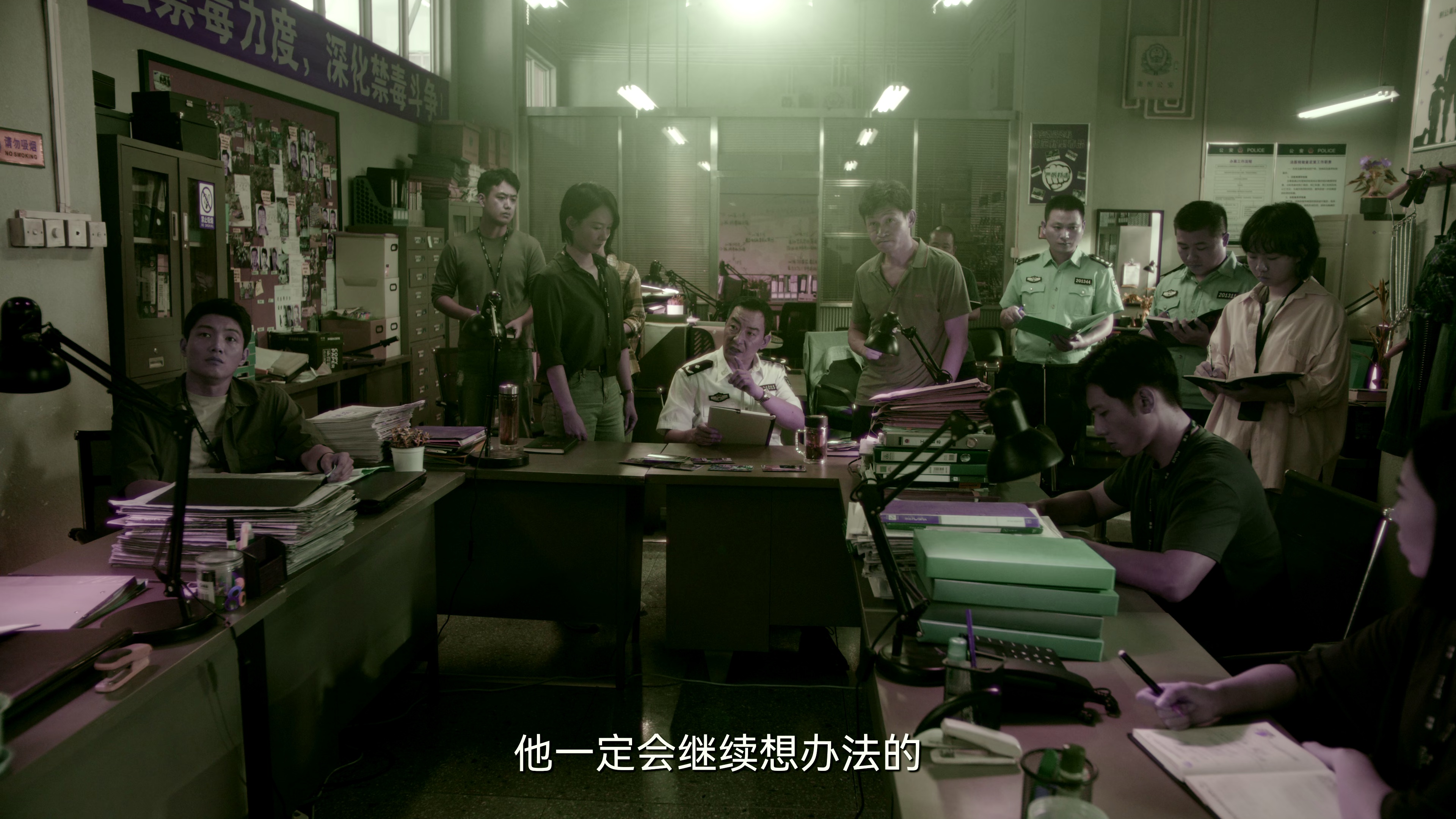 ◎简 介 南州禁毒大队杨一鹏、之安等新老缉毒干警在“清剿行动”后继续围猎丰茂村在逃嫌犯牟森等人归案。2016年,杨一鹏紧盯落网后仍负隅顽抗的“清剿行动”首犯牟海东,一个神秘电话号码牵出三年前逃逸的制毒师牟森。警方逐步摸排出牟森重回南州的重要线索,阻止了其在海滩制毒的计划,打击了牟森团伙与香江买家的海上交易,取得阶段性胜利。倍受打击的牟森着手研制新型毒品“邮票”,隐蔽入市,危害年轻人群。杨一鹏化装侦察获重要线索,警方摧毁了远在湘南的制毒工厂。牟森不甘,收拢暗网大佬安迪,妄图在滇川重建毒品王国。杨一鹏与新警员之安感化牟森身边误入歧途的青年多仔成为线人,传递关键情报。杨一鹏与战友奔赴滇川,终将躲藏于暗网基地的牟森抓获,挫败其建立新毒品网络的企图。至此,三年多的围猎行动画上圆满句号。