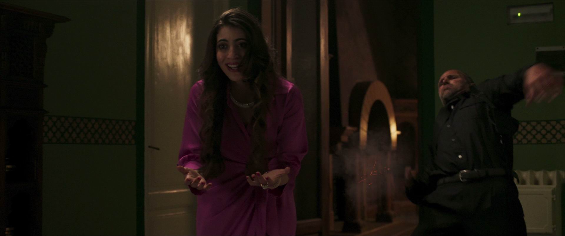 凯特·贝金赛尔饰演的莫琳·达巴格在女儿阿米娜被绑架后,展现了从优雅母亲到决绝战士的蜕变过程。影片开场通过早餐场景的温馨互动与突然中断的电话形成强烈对比,贝金赛尔的眼神从柔和到锐利的转变仅用三秒完成。当她得知前夫带着女儿消失在中东时,颤抖的手指反复摩挲女儿留下的发夹特写镜头,配乐逐渐转为低沉的大提琴独奏,这种视听语言精准放大了角色的窒息感。 斯科特·伊斯特伍德饰演的罗伯森作为前海军陆战队员,其专业素养通过细节动作展现:检查武器时习惯性弹匣双敲、观察环境时总是背靠墙壁。两人在贝鲁特街头追查线索时,导演詹姆斯·肯特采用手持跟拍与无人机俯拍交替的镜头语言,既呈现了狭窄巷道的压迫感,又突显了人物在庞大城市中的渺小。特别值得关注的是市场追逐戏中,当地演员塔利亚·亚瑟拉夫饰演的线人突然反水时,镜头快速切换至贝金赛尔瞳孔放大的特写,配合突然静音后爆发的枪声,创造了极强的心理冲击。 影片在中东场景的构建上极具真实感,从贝鲁特残破的楼房到沙漠检查站,美术团队还原了当地特有的黄褐色调与斑驳墙体。马特·克拉文饰演的腐败官员在豪华办公室与贫民窟的强烈反差中出场,其表演通过整理袖口的小动作暗示角色虚伪性格。当莫琳被迫与军火商交涉时,安娜·戈尔佳饰演的中间人用匕首削苹果的长镜头,既营造了紧张氛围,又隐喻了交易的危险性。 动作设计强调实战感而非炫技,贝金赛尔接受了三个月近身格斗训练,这在狭窄空间的缠斗戏中尤为明显。其中医院逃生片段采用一镜到底拍摄,她拖着受伤右腿爬行时,镜头始终保持在肩部高度,让观众同步体验逃生过程的艰难。配乐大师克劳迪奥·米切莱蒂运用了中东传统乐器乌德琴与现代电子乐混合,特别是在沙漠追车戏中,逐渐加速的鼓点与引擎轰鸣形成听觉共振。 影片对母女情感的刻画超越常规动作片,闪回片段中阿米娜画作的蝴蝶图案成为关键线索,这种意象贯穿全片。当莫琳在废弃工厂发现女儿遗留的蝴蝶发卡时,变焦镜头从物品特写缓慢拉远至全景,配合突然响起的童声哼唱,这种声画对立手法强化了悲剧色彩。需要提醒观众的是,部分审讯场景涉及暴力镜头,心理承受能力较弱的观众建议选择性观看。