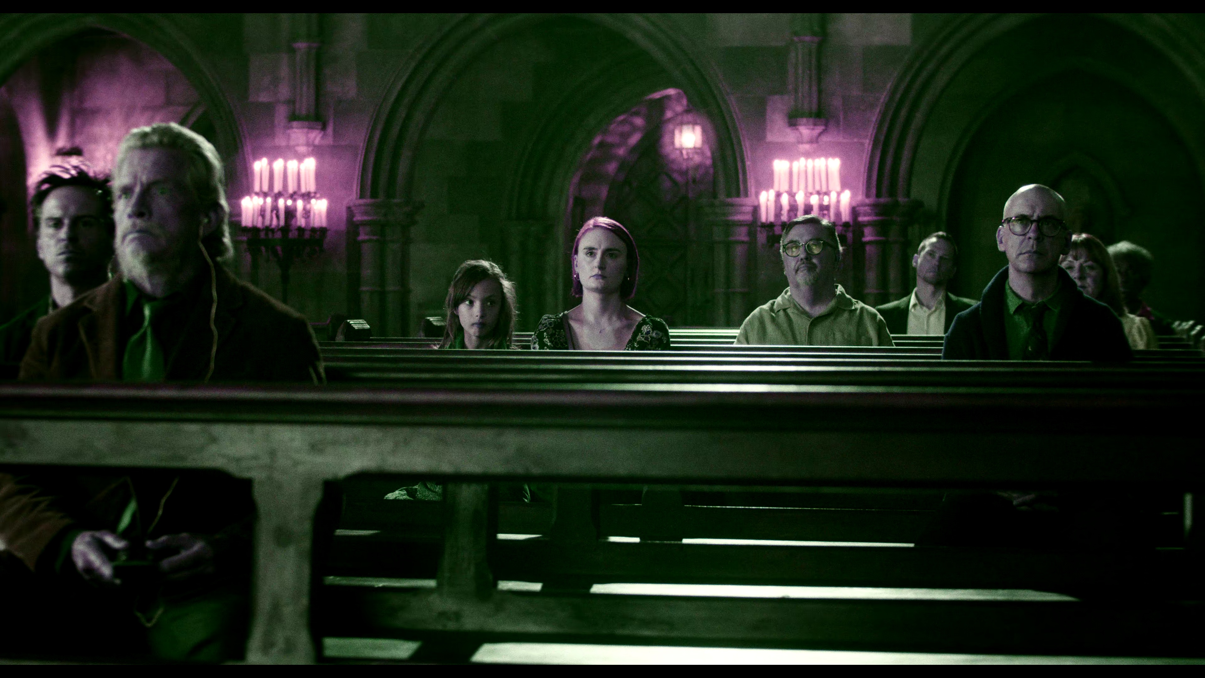 格伦·克洛斯饰演的教会掌权者与乔什·布洛林扮演的地方富豪构成权力网,米拉·库尼斯角色的突然死亡撕开小镇平静表象。导演莱恩·约翰逊在采访中强调本作采用更多特写镜头,安德鲁·斯科特颤抖的手指和卡莉·史派妮瞬间的眼神变化都暗藏线索。配乐延续前作小提琴主旋律,但加入管风琴元素强化宗教压迫感。