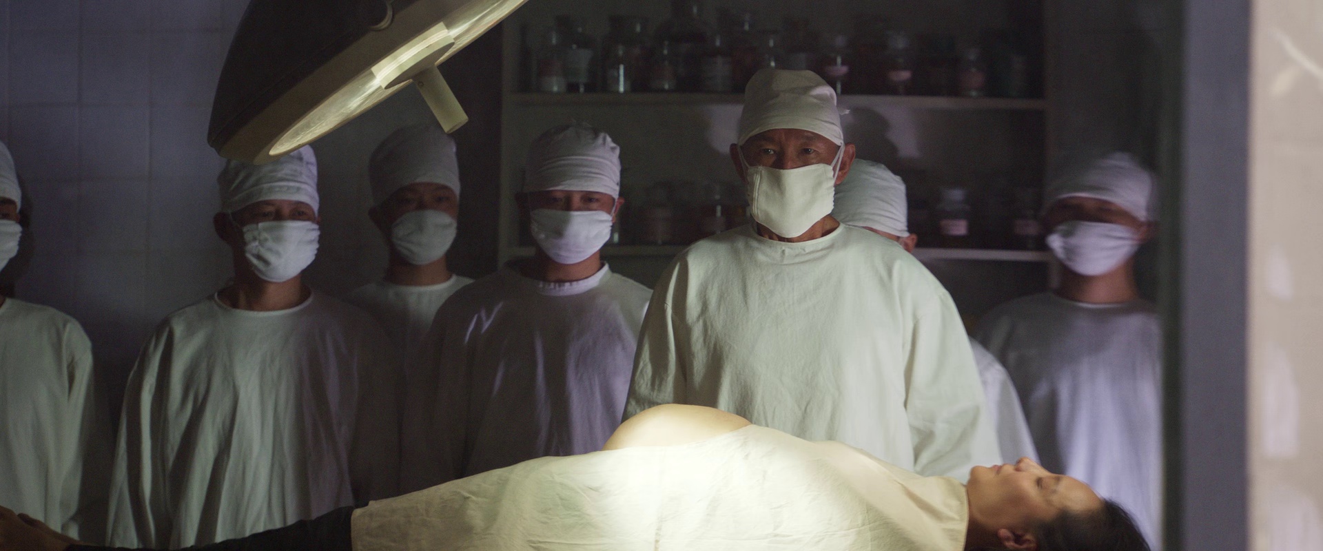 导演赵林山采用纪实风格拍摄,开场15分钟的长镜头跟随平民穿过阴暗走廊,手持摄影的晃动感强化压迫氛围。配乐仅使用环境音效,解剖场景中器械碰撞声与喘息声形成令人窒息的听觉体验。温碧霞饰演的护士角色暗藏反转,其颤抖的注射特写镜头成为全片情绪爆发点。