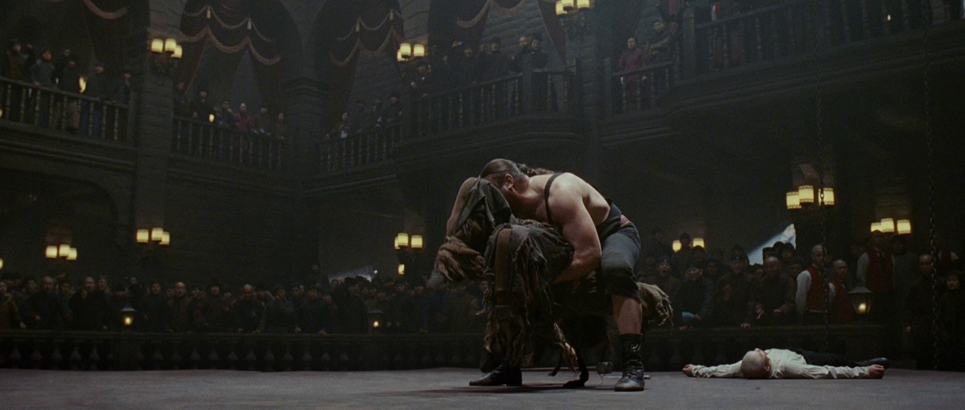 影片最令人印象深刻的是三重武打体系的设计:开场时苏灿使用的正统军旅拳法刚猛直接,中期与安志杰饰演的义兄对决时展现的悲愤式打法充满爆发力,而后期醉酒状态下自创的醉拳则融入了周杰伦饰演的武神幻象中出现的飘逸感。特别是中俄边境决战时,苏灿在雪地踉跄中突然使出的醉拳三连击,通过慢镜头展现酒坛破碎与拳风扬雪的视觉效果,堪称武侠片影史经典画面。