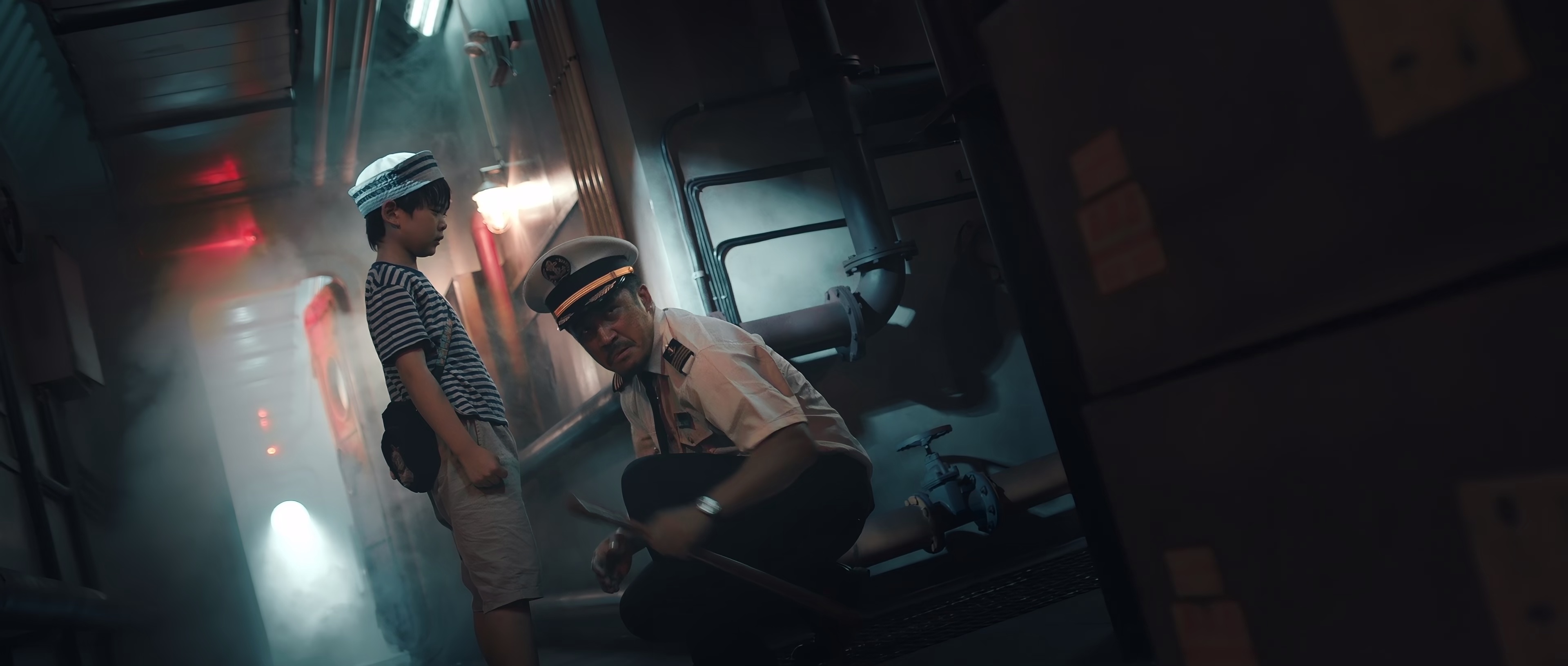《深海大鱼》以一场违背誓言的航海之旅开篇,赫子铭饰演的张扬为满足女儿生日愿望,登上远洋货轮后遭遇实验室逃出的深海怪物。导演吴鹰翔用大量俯拍镜头展现钢铁船舱的压迫感,120帧高速率画面让怪物的鳞片反光与血浆喷溅更具冲击力,但部分观众可能对持续紧张节奏感到疲惫。