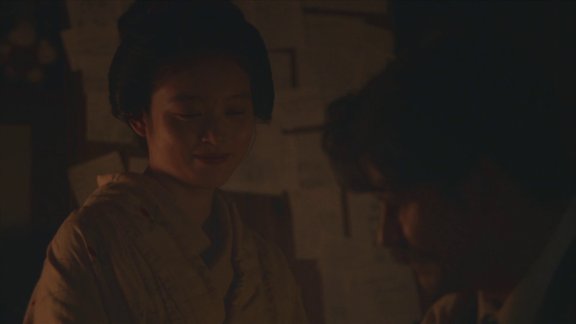 饰演松野的高石明里在本集有层次地演绎了从据理力争到妥协隐忍的情绪转变,当她默默重抄被墨水染脏的稿纸时,特写镜头里颤抖的睫毛和紧抿的嘴角胜过千言万语。值得注意的是池胁千鹤饰演的邻居太太带来关键转折——她讲述的河童传说启发了夫妻俩将本土精怪与移民劳工的处境隐喻结合,最终诞生了剧中最动人的《轱辘首》篇章。