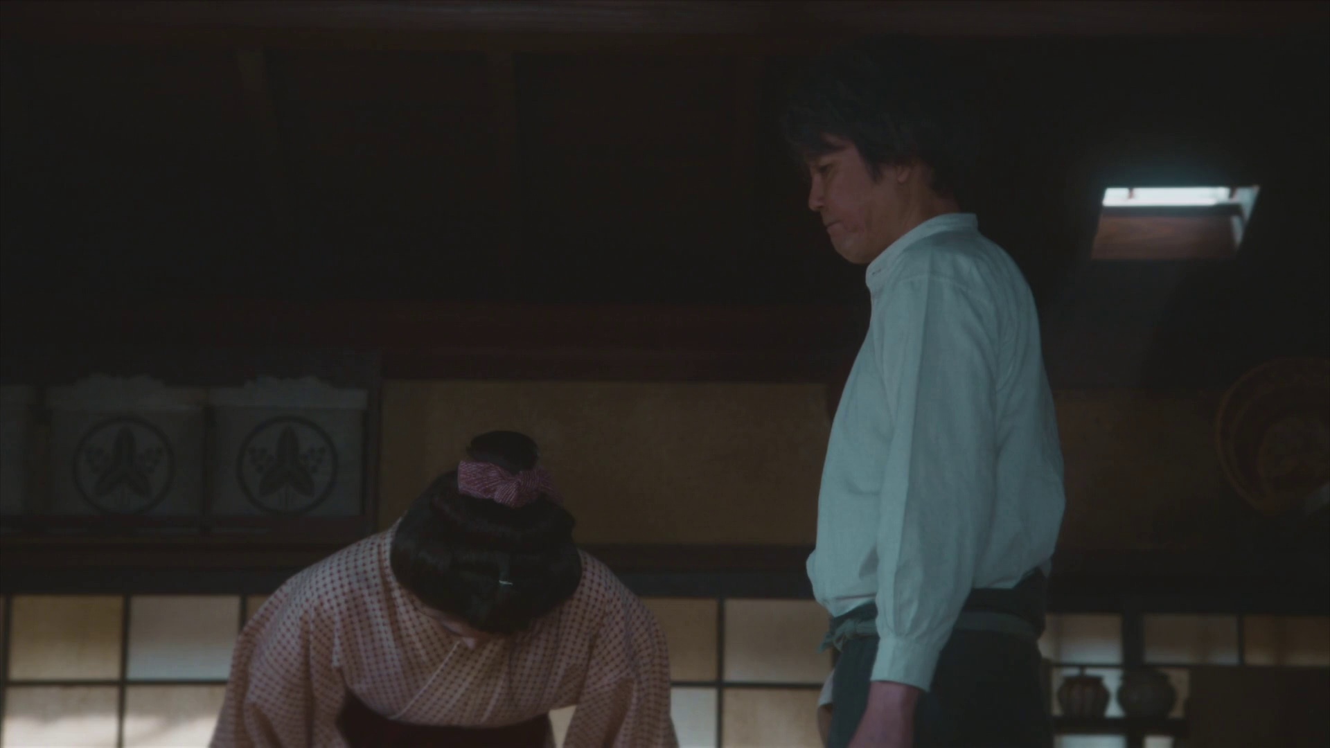 第58集延续了松野时与丈夫共同创作怪谈的主线,当丈夫执笔的《雪女》被报社退稿时,两人首次爆发价值观冲突。松野坚持怪谈应保留民间传说的悲悯底色,而丈夫则倾向迎合西方读者对东方神秘主义的猎奇期待,这场争执通过书房里那盏不断摇曳的煤油灯具象化呈现。