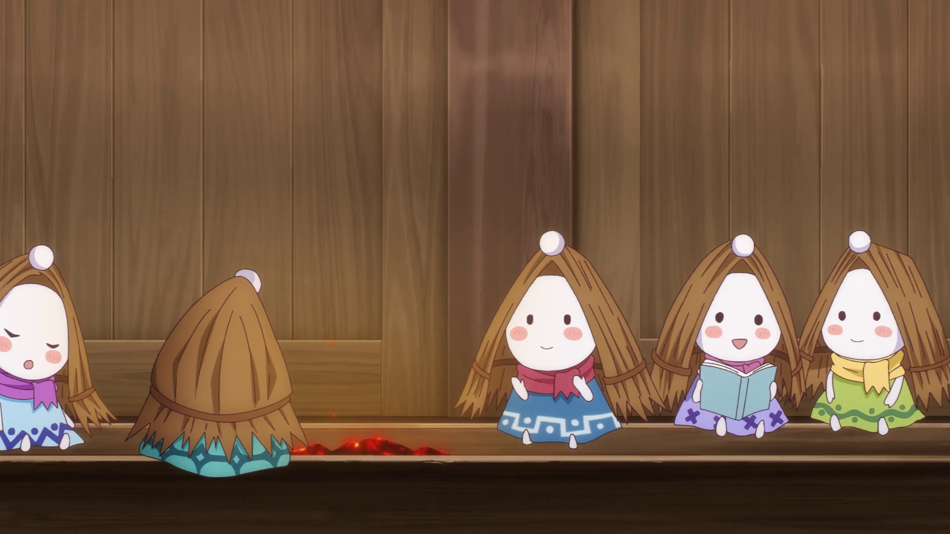 本集最大冲突发生在傍晚时分,鸦天狗长老突然造访并质问银次为何纵容人类干涉妖怪事务。面对长老"破坏规矩就要承担后果"的警告,银次首次展现出凌厉妖气,而躲在帘后的葵则攥紧了手中的菜单。这场戏通过东山奈央颤抖的声线和小西克幸压低的气音,将妖怪世界的规则与人情温暖的对立展现得淋漓尽致。