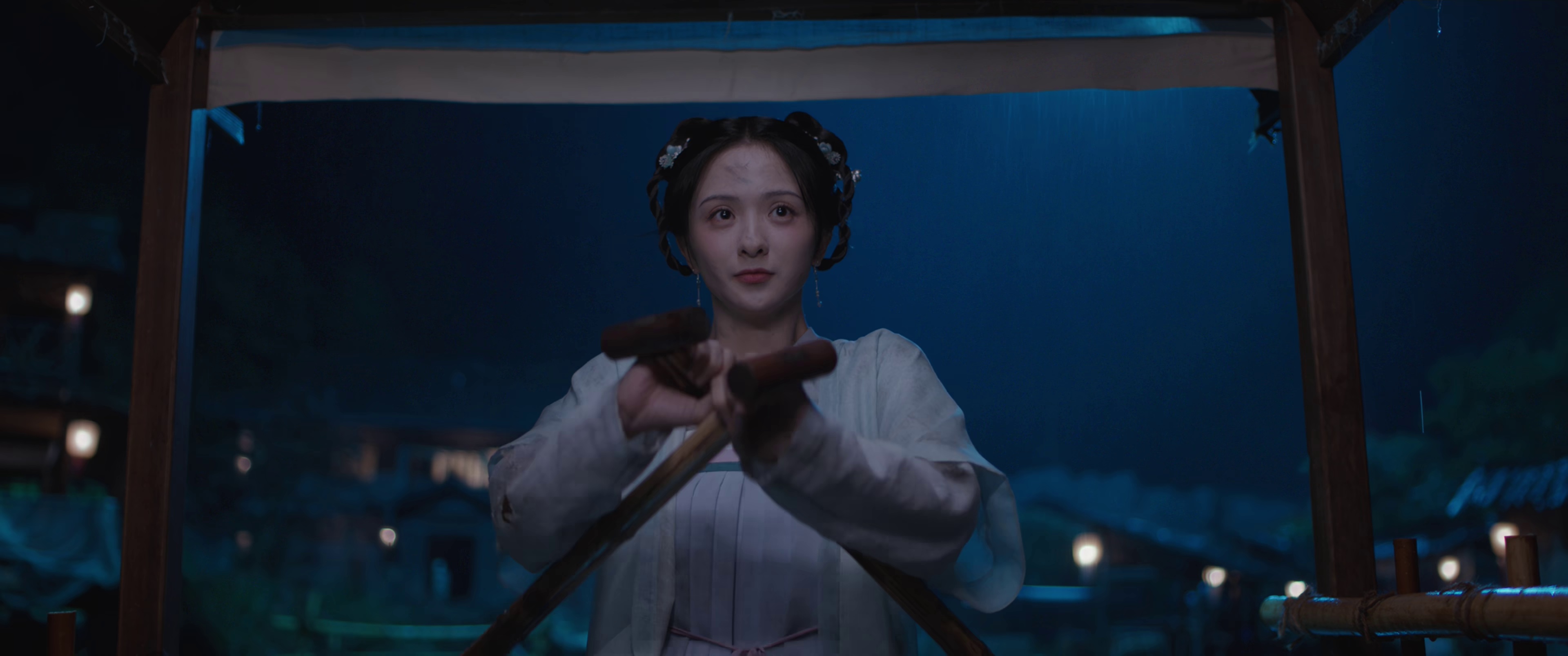 本集最大冲突来自毛晓慧饰演的反派角色,她为夺取瓷器中隐藏的航海图,不惜在当铺纵火。这场戏采用一镜到底的拍摄手法,火焰中毕之护住瓷器的背影,与苏北陆在急诊室抢救伤员的画面交叉剪辑,巧妙呼应了两人守护者的身份。王宥钧饰演的锦衣卫百户突然现身现代街头,其腰牌上缺失的玉坠正是下集重要伏笔。