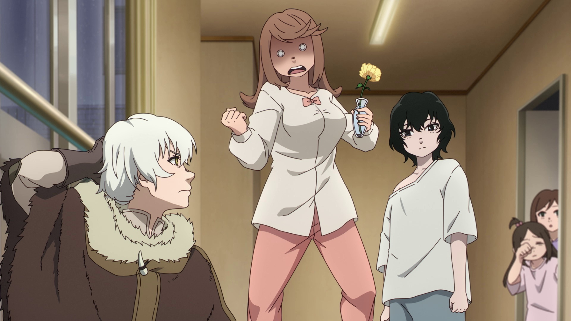 第三季第12集将故事舞台完全转向现代社会,不死以高中生身份潜伏在校园中。与中世纪篇的物理对抗不同,本集叩门者化身为心理暗示,通过放大同学间的嫉妒与孤独制造混乱。川岛零士配音的主角首次表现出犹豫,当目睹楠木灯饰演的少女因被操控而自残时,其'不干涉人类命运'的原则产生动摇。