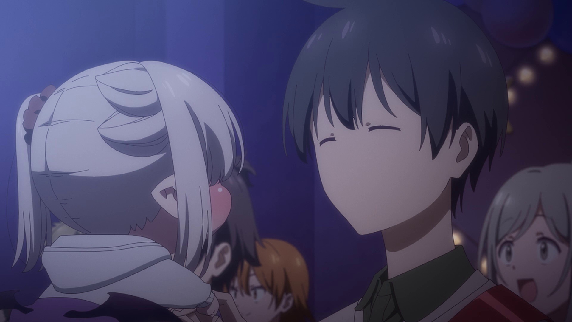 节奏方面,它明显不是那种一环扣一环的剧情番。一集就二十多分钟,讲一两个小事件,比如月菜为了练习吸血闹出的乌龙,或者她怎么在同学面前努力掩饰自己的“业务不熟练”。属于典型的单元剧模式,没啥追更压力,吃饭的时候点开一集,乐呵乐呵就完了。是标准的轻松下饭剧,别指望有什么神展开。